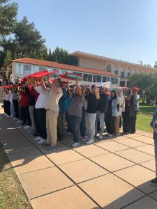 بعدها رفع طلاب الجامعة العلم اللبناني عالياً على وقع الأناشيد والأغنيات الوطنية