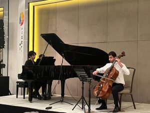 ثم انتقل الجمهور إلى عالم إدفارد غريغ عبر السوناتا للّتشيلّو والبيانو بــلا الصغير – الحركة الأولى Allegro agitato، التي أدّاها آنجيلو الخوري على التشيلو وكيفن يوسف على البيانو. حمل العمل الروح الإسكندنافية الواضحة في موسيقى غريغ، من حرارة الانفعال إلى اللمسات اللحنية المتدفقة، مع توازن لافت بين العاطفة والقوة التعبيرية.